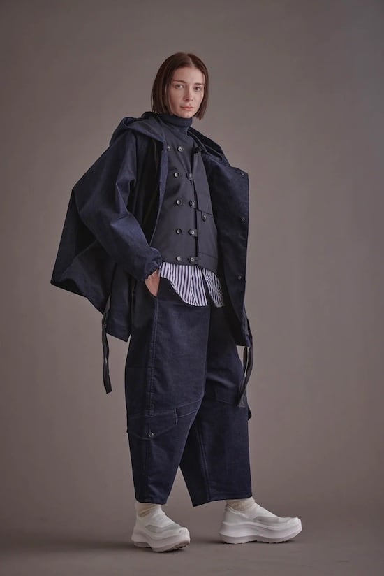 1940sシーマンズプロテクティブジャケットをモチーフに制作したAラインフーデットジャケット。