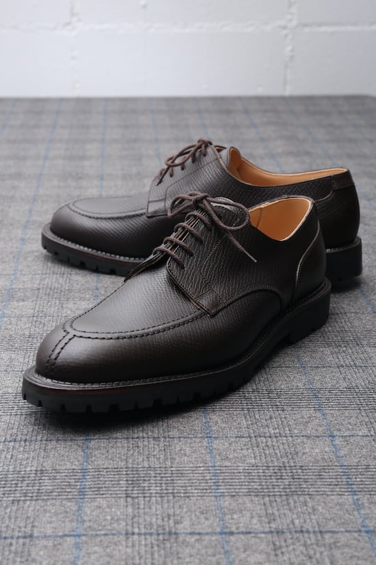 Denver, an apron-fronted derby made on the excellent fitting 378 last, featured here with robust storm-welts and our chunky Vibram rubber sole, produced in our newest leather, Hatch Grain Hide. From the Men's Main Collection.